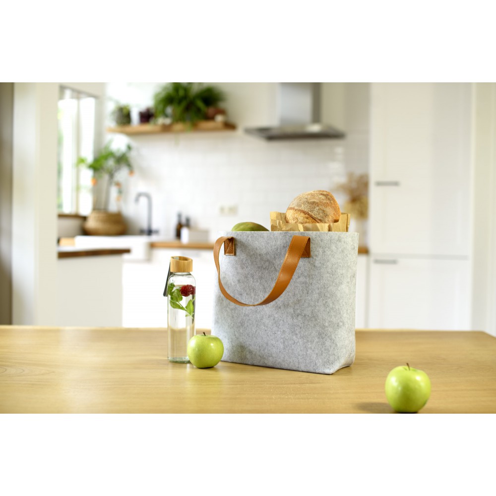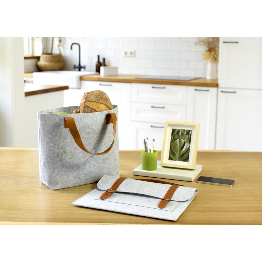 RPET filc bevásárlótáska PU fogantyúkkal. Egy nagy rekesz.