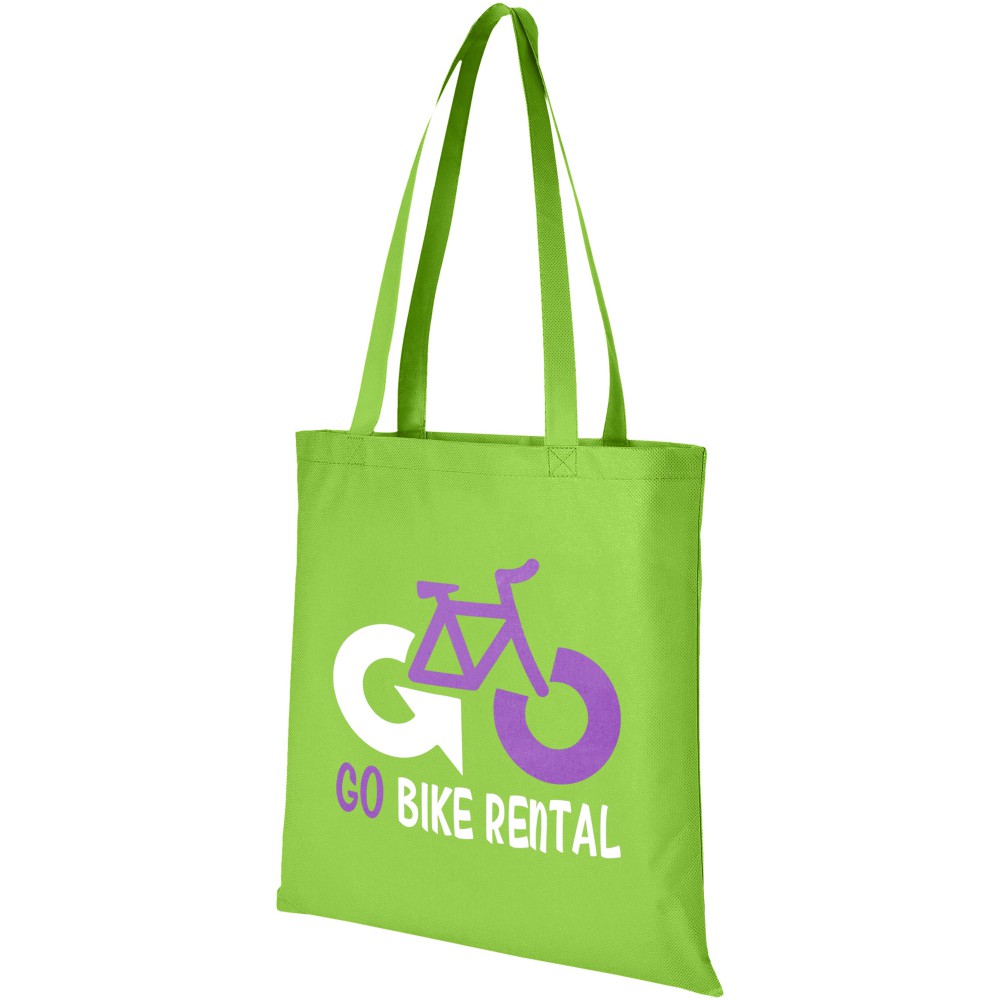 A Zeus nagyméretű, nemszőtt táska tökéletes választás konferenciákra, kiállításokra. Fülek magassága 29,2 cm. Újrahasznosítható anyag. 80 g/m2 nemszőtt polipropilén.
