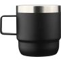 Újrahasznosított rozsdamentes acélból készült bögre (180 ml) duplafalú kialakítással, kerámia belső bevonattal és fogantyúval, a csészén lézergravírozott recycled (újrahasznosított) rozsdamentes acél alapanyagra utaló logó található, darabonként barna kartondobozba csomagolva.