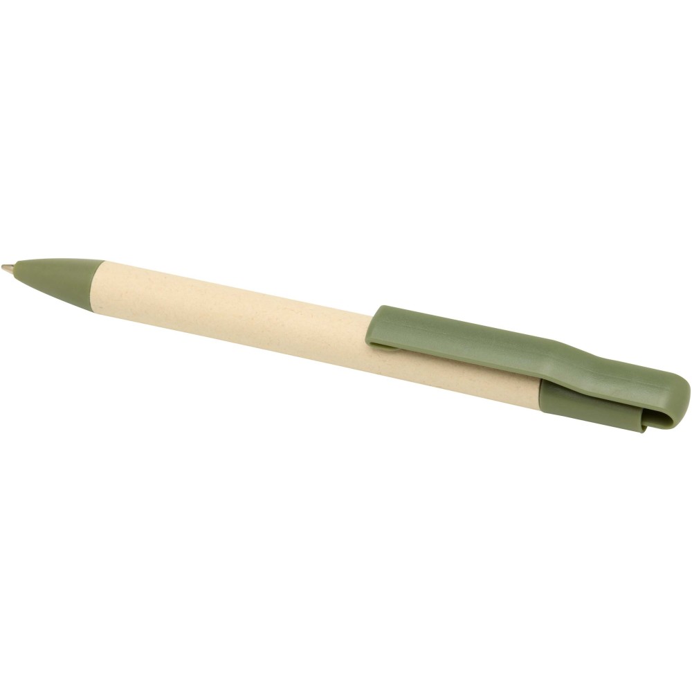 Liliana nádpapírból készült golyóstoll kék tollbetéttel, hamvaszöld