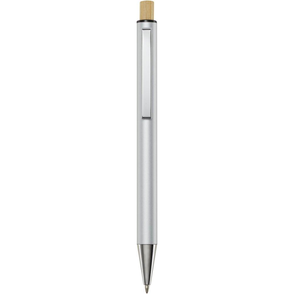A Cyrus golyóstollújrahasznosított alumíniumból készül, ami kevesebb energiát igényel, mint az alumínium nyersanyagból történő előállítása. Emellett csökkenti a hulladéklerakókba kerülő hulladék mennyiségét és hozzájárul a természeti erőforrások megőrzéséhez, amelynek célja az üvegházhatású gázok kibocsátásának csökkentése. A nyomógomb bambuszból készült. Tollbetét színe: kék. Íráshossz: 800 méter. Tollhegy mérete: 1,00 mm.