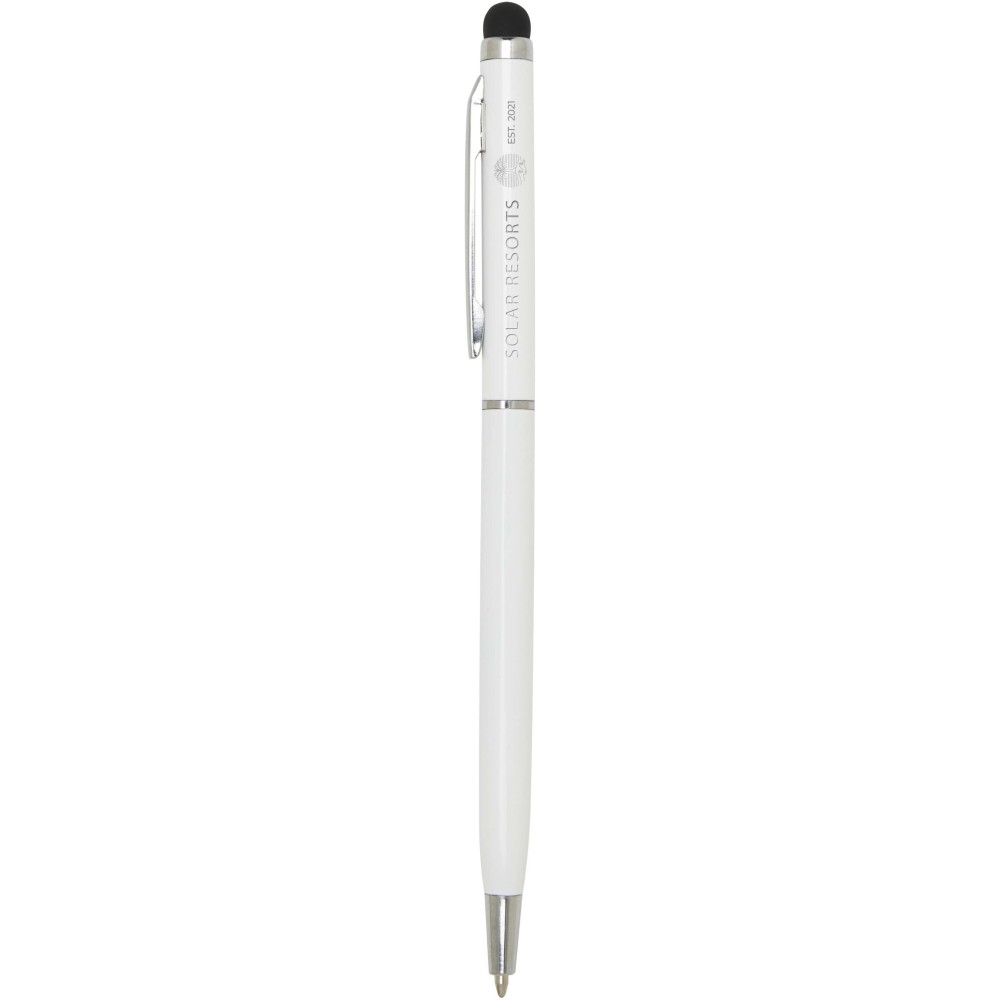 Ez a sokoldalú érintőceruzával ellátott golyóstoll tartós alumíniumból készült. A toll sima írást biztosít, míg a beépített érintőképernyős vég a pontos online navigációhoz ideális. Tinta színe: kék. Íráshossz: 1000 méter. Tollhegy mérete: 1,0 mm.