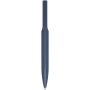 Újrahasznosított alumínium golyóstoll gumírozott felülettel. Csíkos részletekkel a markolaton és a tetején, krómozott műanyag heggyel és fém klipsszel ellátott nyomógombbal. Lézergravírozott újrahasznosított logóval. Kék tintával.