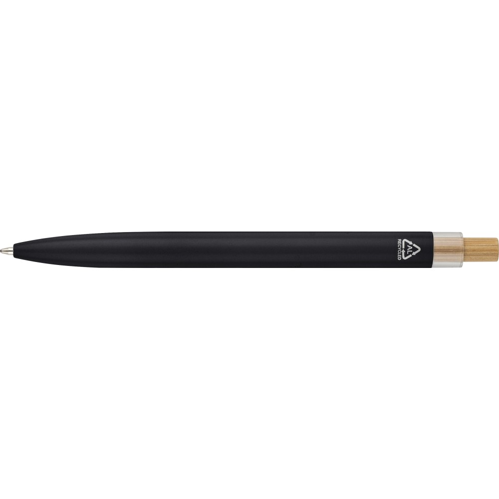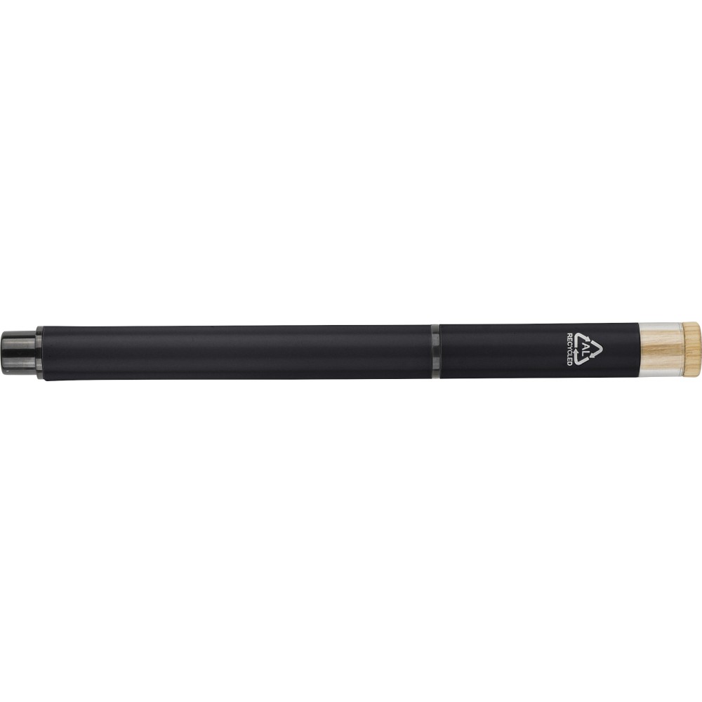Újrahasznosított alumíniumból készült, lakkozott tollszett golyóstollal és rollerball tollal. A golyóstoll bambusz nyomógombbal, rPET díszítéssel és fém klippel rendelkezik, míg a rollerball toll bambusz/rPET kupakdíszítéssel és hozzá illeszkedő klippel. A tolltesten gravírozott recycled (újrahasznosított) alapanyagra utaló logó található mindkét toll esetében. A golyóstoll kb. 700 méter, a roller toll kb. 500 méter íráskapacitású, mindkettő kék színű tollbetéttel. Színes, újrahasznosított kartonból készült ajándékdobozba csomagolva.