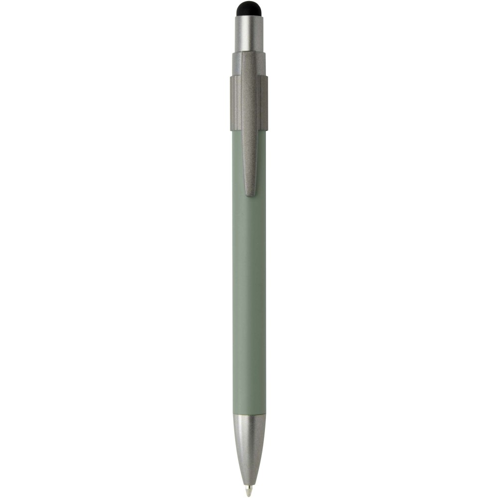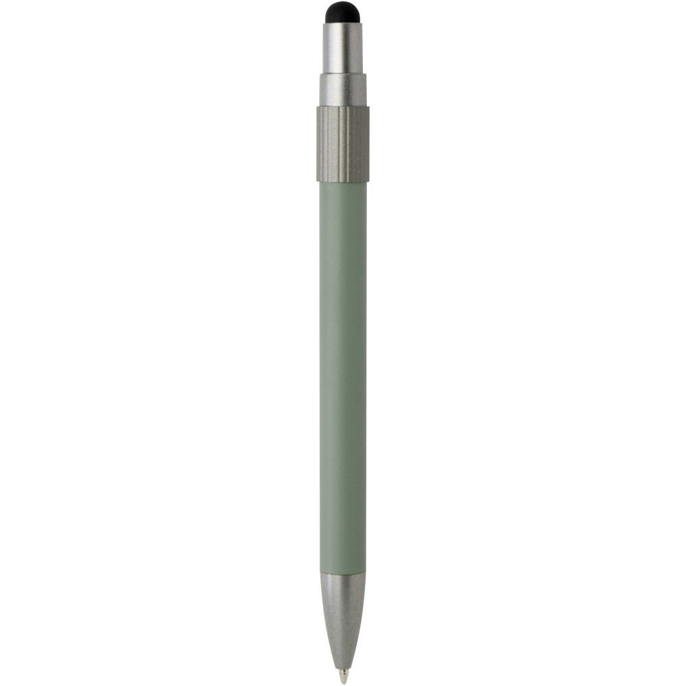 Golyóstoll érintővéggel és fidget spinnerrel, amely a praktikumot játékos dizájnnal ötvözi. A toll RCS tanúsítvánnyal rendelkező újrahasznosított alumíniumból készült, sima működésű nyomógombos szerkezettel és az érintőképernyőkhöz használható érintővéggel rendelkezik. A toll tetején a fidget spinner kiváló stresszoldó. Fekete tollbetéttel, íráshossza 1000 méter.
