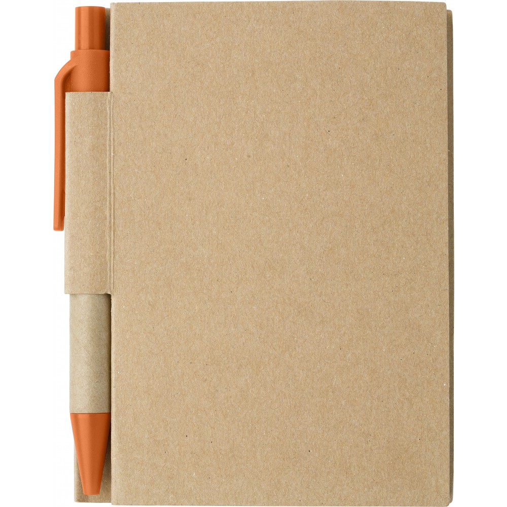 Mini füzet tollal, fekete tollbetéttel, natúr/narancs