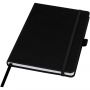A5 jegyzetfüzet újrahasznosított PET műanyagból készült szövet borítóval. 80 lap 70 g/m2 újrahasznosított, vonalas papír, tolltartó hurok és szalag könyvjelző. Kombinálható a 107757 Honua RPET golyóstollal.