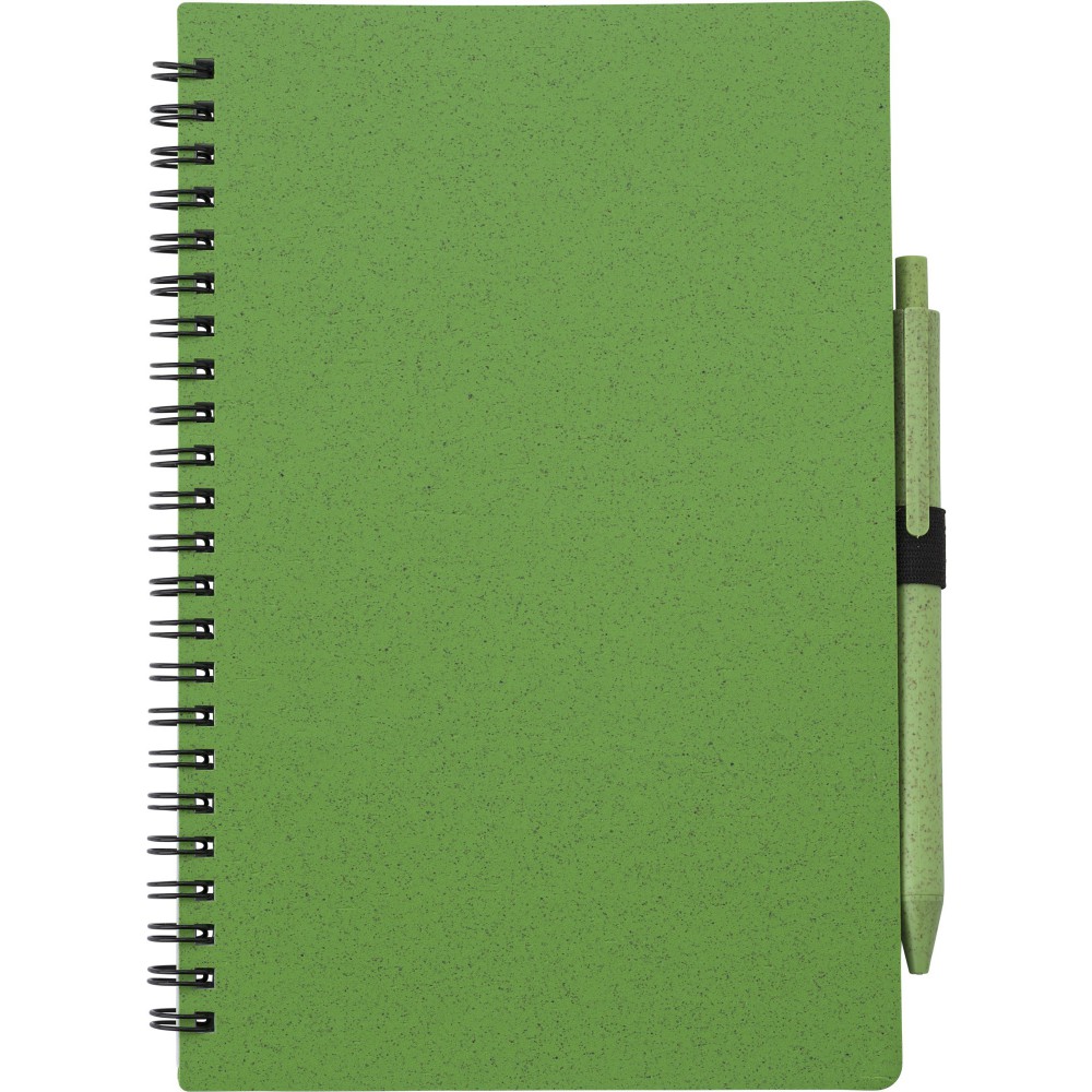 Szalma és PP műanyag felhasználásával készült füzet és golyóstoll (kék tollbetéttel). 70 vonalas lap. Kb. A5-ös méret.