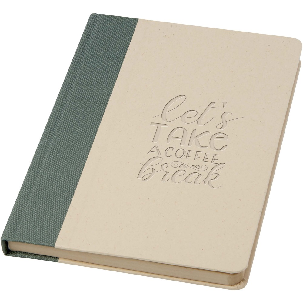 A Liliana A5 keménytáblás jegyzetfüzet lekerekített sarkokkal és 80 vonalas, 90 g/m2-es lapokkal rendelkezik. A borító RPET-ből és cukornádból készült.