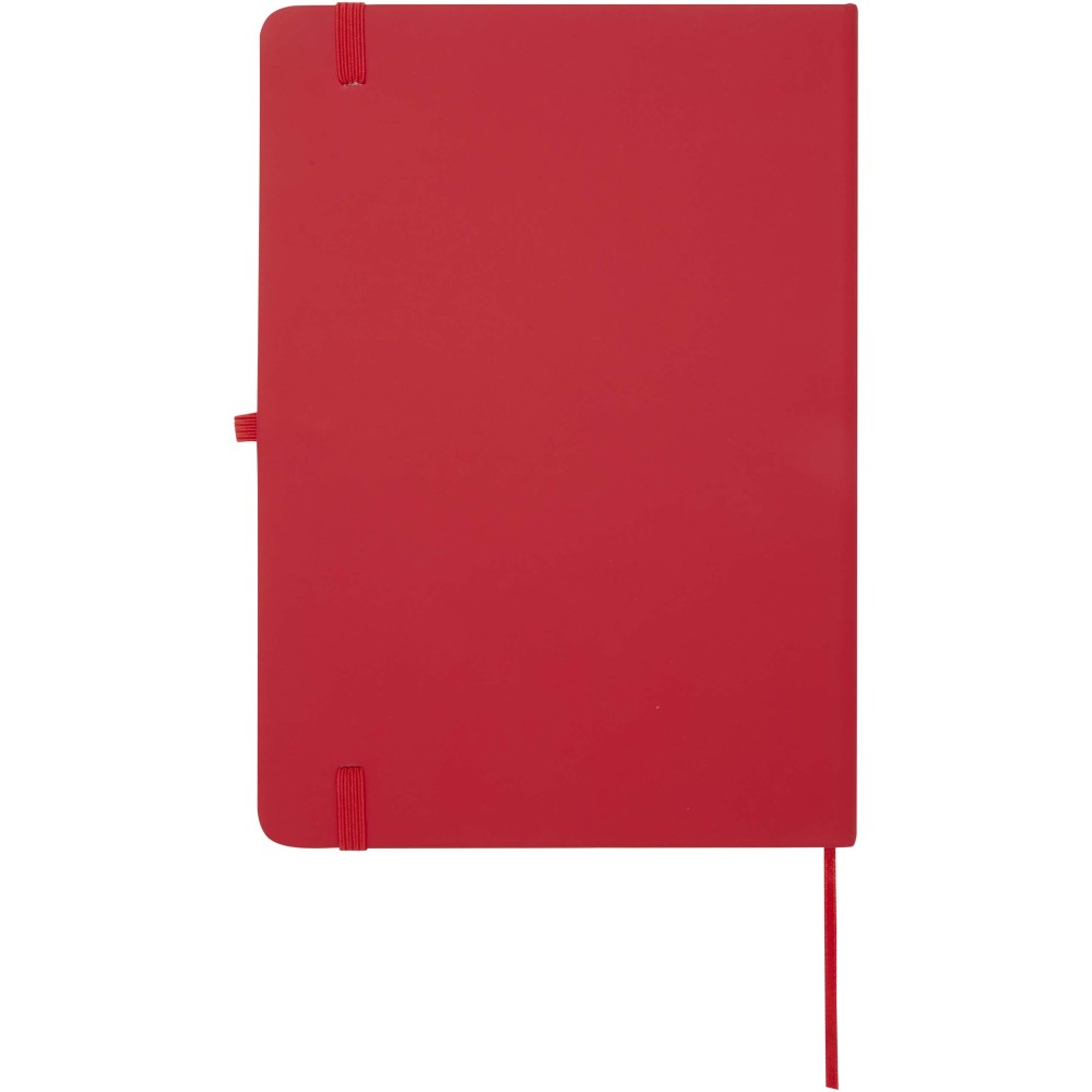 A Spectrum Plus A5 keményfedeles jegyzetfüzet lekerekített sarkokkal nemcsak az irodai mindennapok elengedhetetlen kelléke, hanem remek lehetőség márkád népszerűsítésére is. A jegyzetfüzet puha tapintású borítóval rendelkezik és 80 vonalas, krémszínű, 70 g/m2-es lapból áll, amely tökéletes gyors ötletek vagy hosszabb jegyzetek rögzítésére. A jegyzetfüzet tolltartó hurokkal, gumiszalagos záródással, könyvjelzővel és harmonikazsebbel van ellátva.
