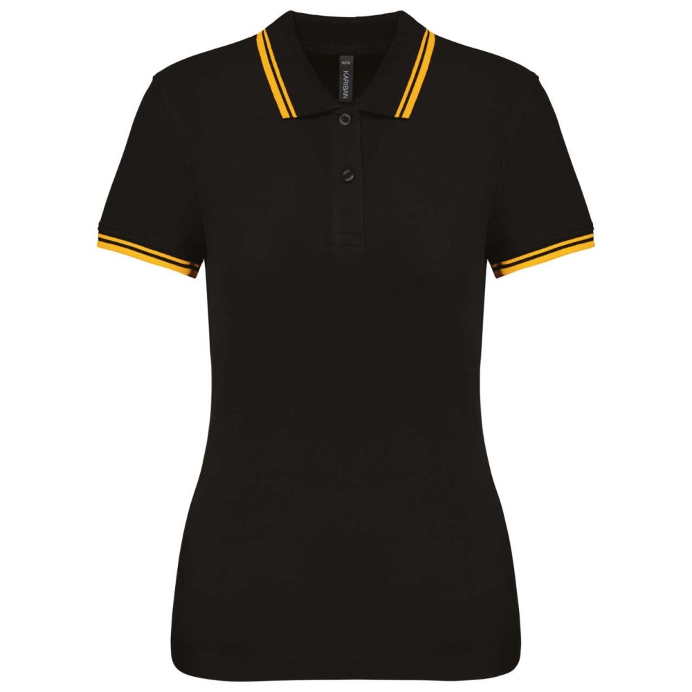 Kariban női rövidujjú galléros póló, Black/Yellow