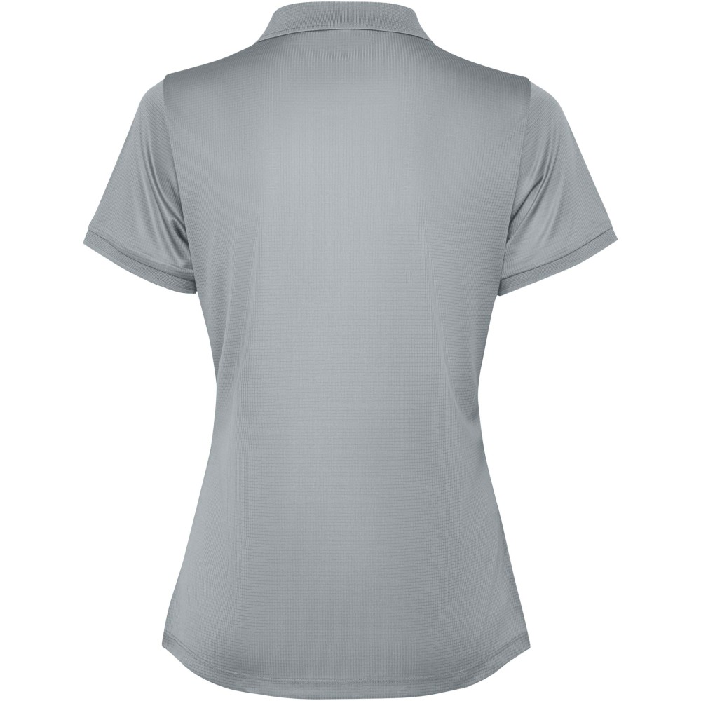 Rövidujjú galléros női póló. Erősített, fedett varrások a belső gallérban. 1x1 bordázott kézelő és gallér. Oldalsó varrások. 3 gombos nyakrész és oldalsliccek. 120g/m2.
