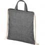 Tornazsák 210 g / m2 újrahasznosított pamut poliészter keverékből. Az újrahasznosított pamut textilipari szabászati hulladékból ered. Az újrahasznosított anyag természetéből fakadóan kisebb eltérések lehetnek a színben. Fülmagasság 14 cm. Teherbírás 5 kg-ig. Újrahasznosított pamut, 210 g/m2, újrahasznosított poliészter.