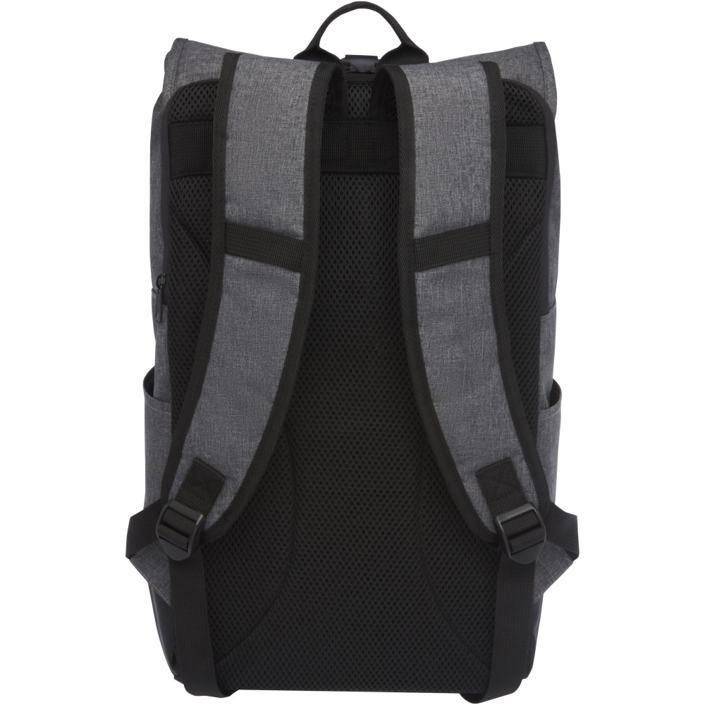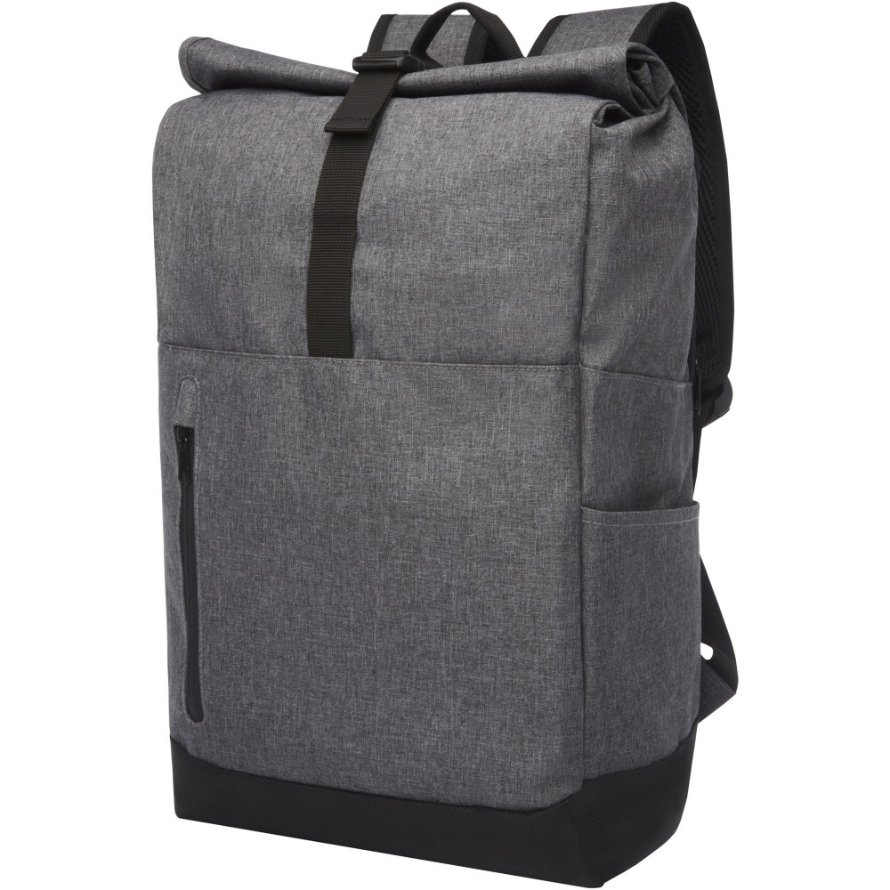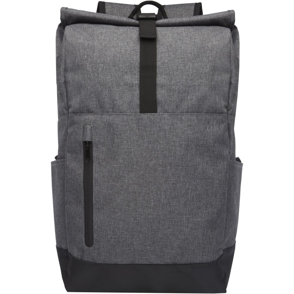 15,6 -es laptop hátizsák párnázott laptoptartóval párnázott, állítható vállpántokkal, cipzáras fő rekesszel, feltekerhető zárással, 2 füllel és elülső cipzáras zsebbel. Poliészter, 300D poliészter.