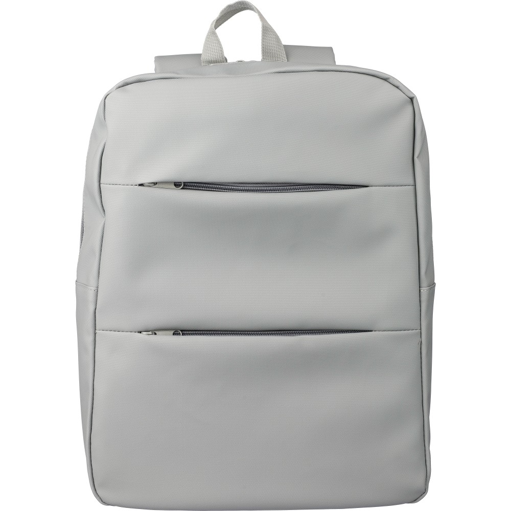 Laptop hátizsák 15 -es készülékhez. Két cipzáras elülső zsebbel, egy nagy cipzáras rekesszel és tépőzáras laptoprésszel, valamint több belső zsebbel. Szellőző, párnázott hátoldallal, trolifogantyúval és állítható vállpántokkal. Vízlepergető. Anyaga: PU.