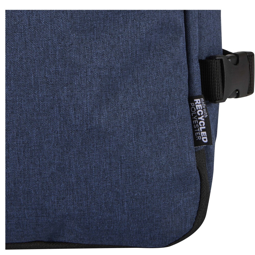 GRS tanúsítvánnyal rendelkező újrahasznosított poliészterből készült, RPET béléssel ellátott Libra hátizsák, melynek méretei megfelelnek a légitársaságok kézipoggyászra vonatkozó előírásainak. A táska egy dedikált, legfeljebb 17" méretű eszközök fogadására alkalmas laptoptartó rekesszel, valamint egy tágas főrésszel rendelkezik, amelyben rugalmas pántok és hálós elválasztók biztosítják a tartalom rendezettségét. Az elülső oldalon két nagyméretű cipzáras zseb található az alapvető kellékek gyors eléréséhez. A kényelmes viseletről és a praktikus szállításról légáteresztő hátpanel, bőröndre rögzíthető pánt, állítható vállpántok, mellkaspánt, valamint felső és oldalsó hordozófogantyúk gondoskodnak. Letisztult megjelenése és funkcionális kialakítása miatt kiváló választás üzleti utakhoz vagy irodán kívüli munkavégzéshez, miközben alapanyaga az öko-tudatosságot tükrözi.