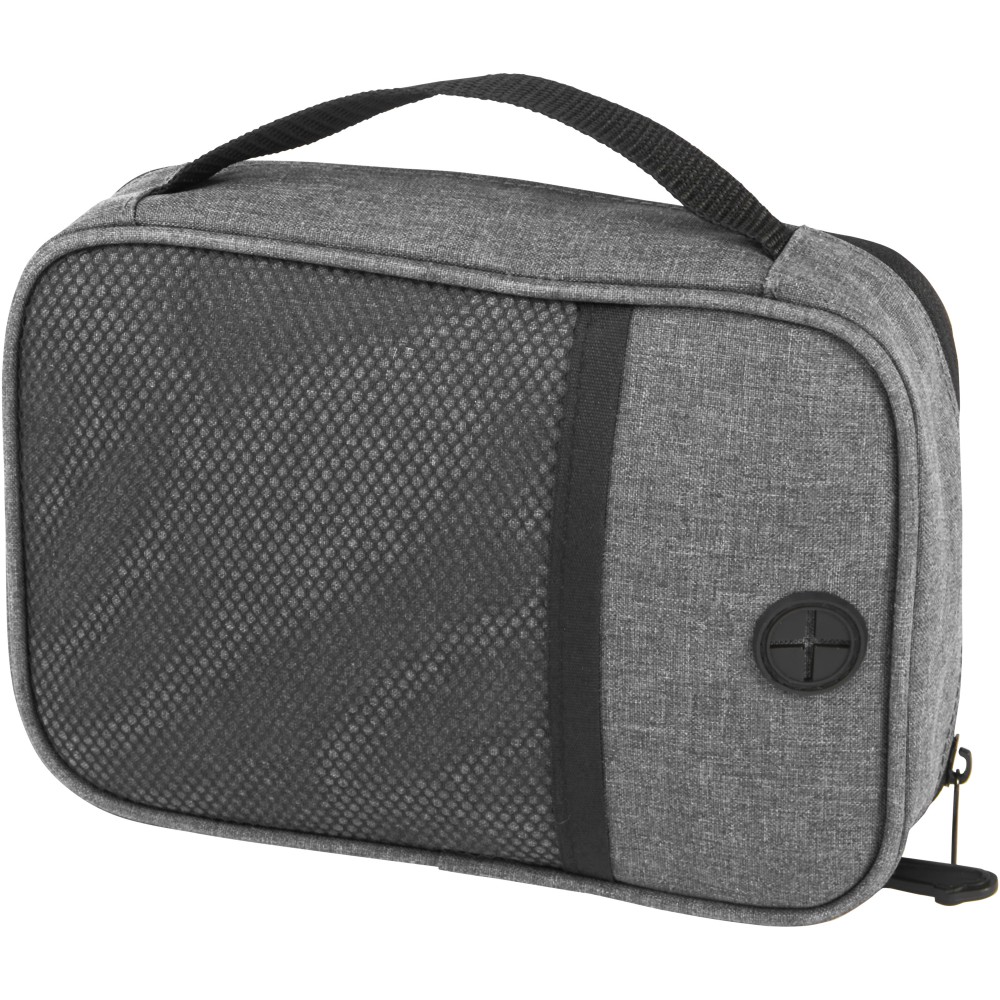 A Ross GRS újrahasznosított tech-táska ideális az állandóan úton lévők számára, és rendezetten tarthatja a powerbankokat, töltőkábeleket vagy bármilyen más elektronikus kiegészítőt. Több zsebbel, elasztikus hurokkal és egy kábelátvezető résszel rendelkezik, amely lehetővé teszi a powerbank tárolását, miközben a telefont tölti. Egy műanyag karabinerrel is rendelkezik egy másik táskához való rögzítéshez. Űrtartalom: 1 liter.