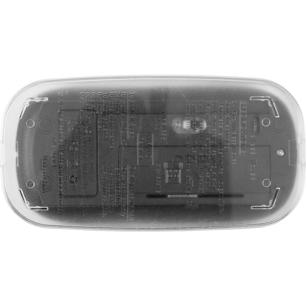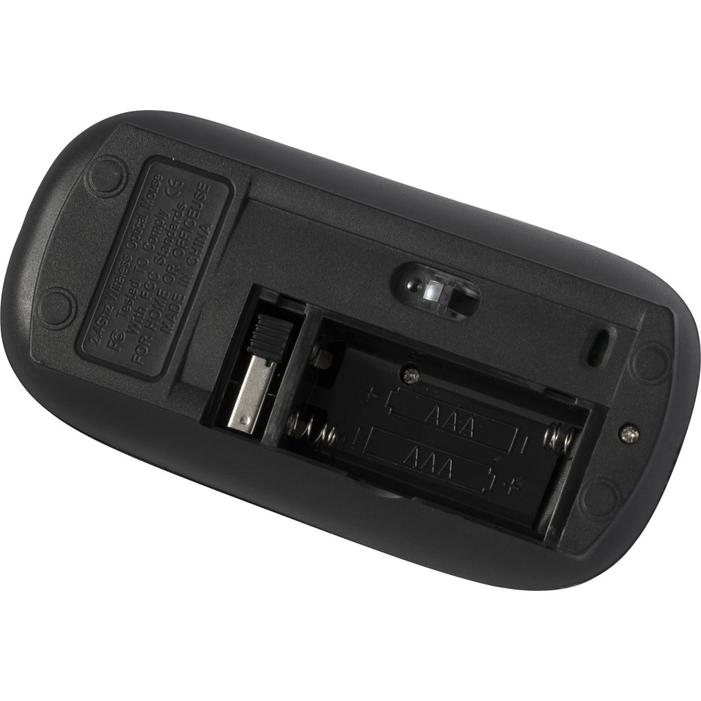 Vezeték nélküli optikai egér, 2,4Ghz. Energiatakarékos egér rejtett Nano vevőegységgel és görgetővel. Az elemet tartalmazza. ABS műanyag.