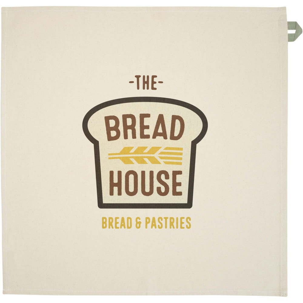 Konyharuha 100% GRS tanúsítvánnyal, 200 g/m2 újrahasznosított pamutból készült, és jellegzetes kontrasztos akasztóval rendelkezik. Mérete: 50 x 50 cm.