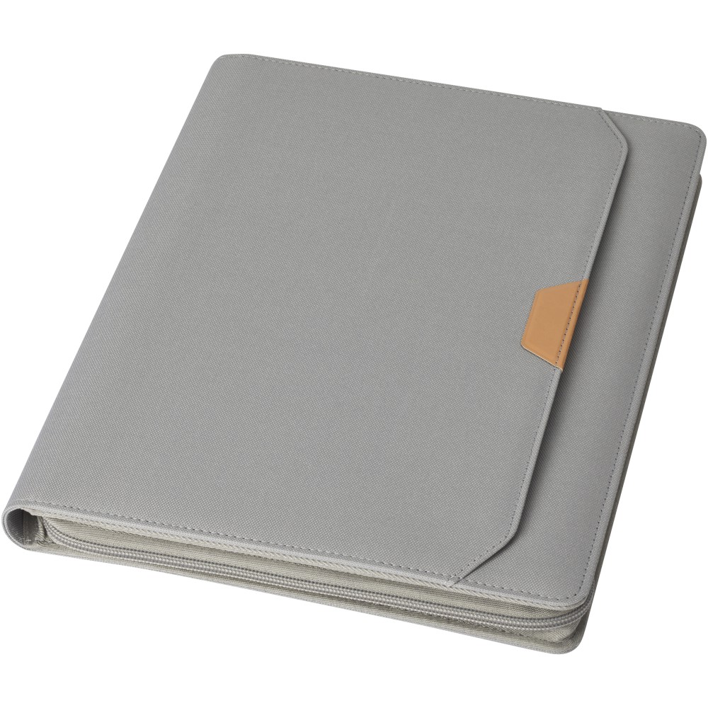 Az RCS tanúsítvánnyal rendelkező Nomumi portfólió részben újrahasznosított poliészterből készül, így ez a portfólió fenntarthatóbb választás, mivel segít csökkenteni az új nyersanyag felhasználást. Cipzáras záródással, tollhurokkal, harmonikazsebbel és 20 fehér vonalas lappal rendelkezik, amelyek 70 g/m2 -es, fenntartható forrásból származó, újrahasznosított papírból készültek. A képeken látható toll és egyéb kiegészítők nem tartoznak a termékhez.