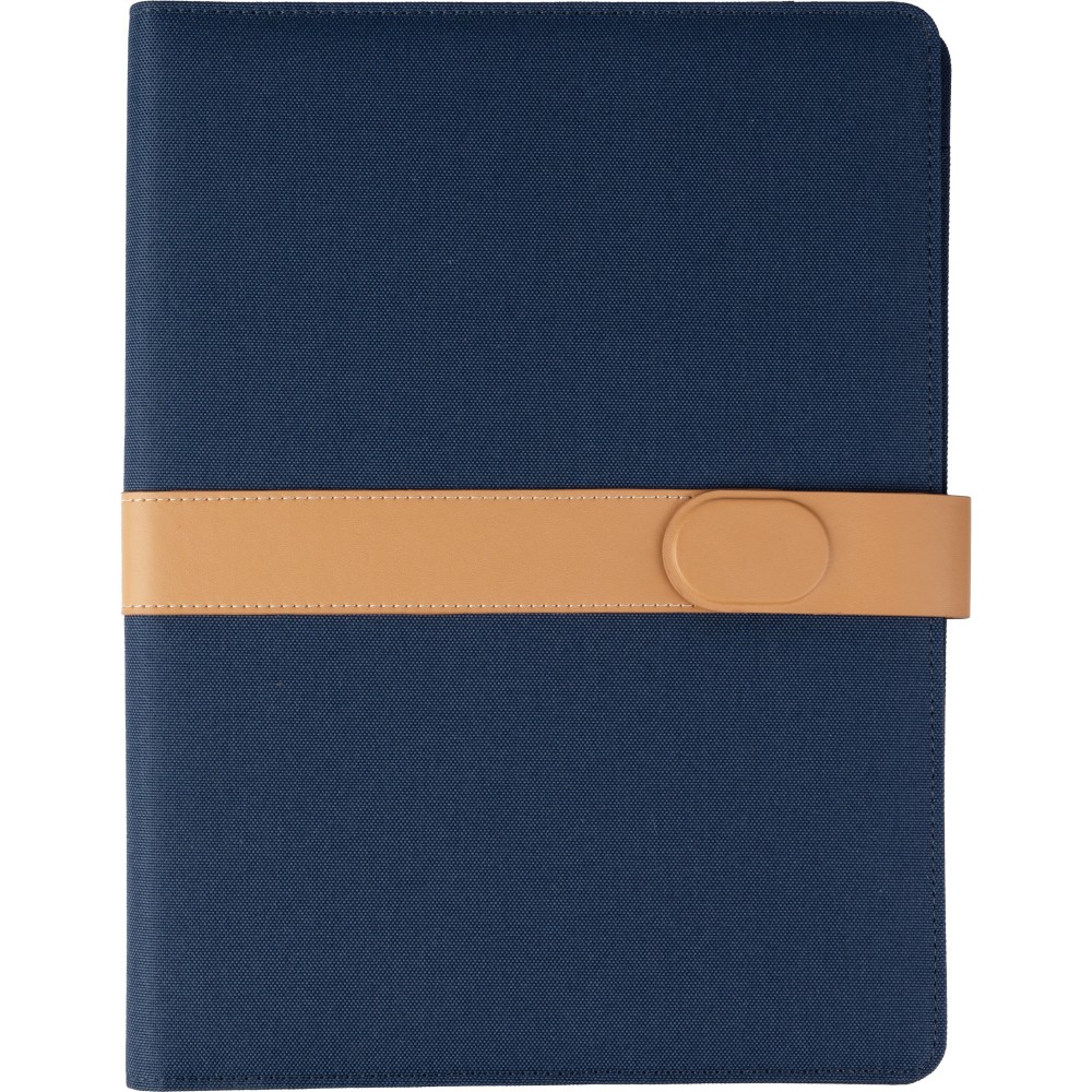 RPET összehajtható mappa, kb. A4-es méretben, több rekesszel, tollhurokkal és mágneses zárással. Tartalmaz egy jegyzettömböt 20 vonalas lappal. Egyedileg csomagolva kraft papír tokba.