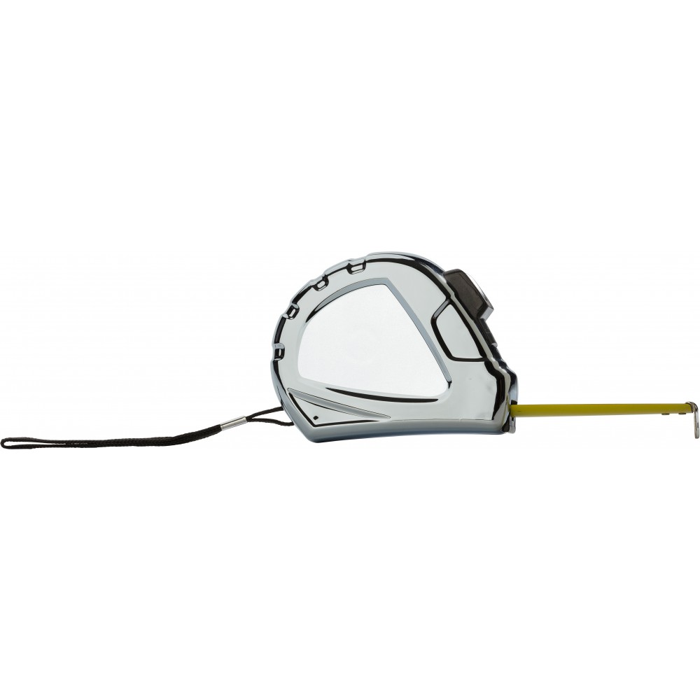 5 méteres mérőszalag centiméter beosztással, fényes házzal, övcsattal, csuklópánttal.