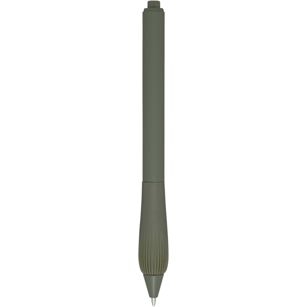 Újrahasznosított műanyag golyóstoll gumírozott tolltesttel és TPR anyagból készült fogórésszel. Kék tollbetéttel. Írási hossz: 1000 méter. Hegyméret: 1,0 mm.