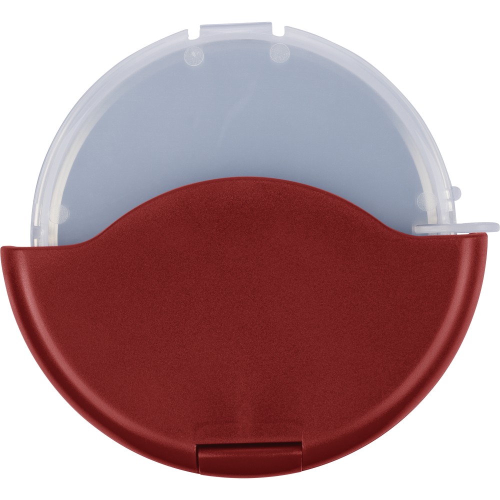 ABS és PP anyagból készült pizzavágó 430-as rozsdamentes acél pengével, kivehető védőborítással, amely könnyen felpattintható a tisztítás és a penge elérése érdekében. Újrahasznosított polietilén tasakba csomagolva.