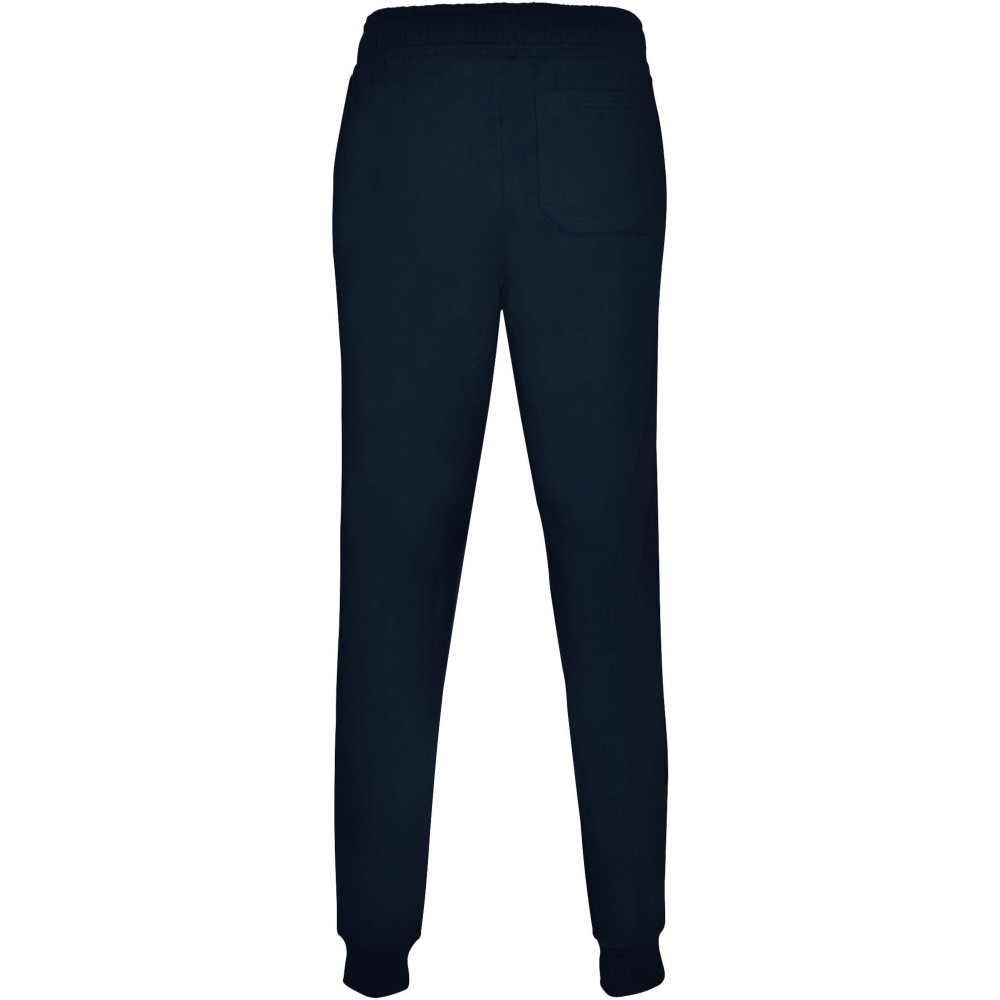 Sportnadrág széles, állítható derékkal és húzózsinórral, szűkített szegélyekkel a lábakon, megerősített varratokkal, bordás oldalsó zsebekkel, valamint sarok zsebbel, díszített varrással. Levehető címke.