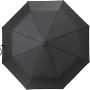 Automata nyitású és zárású, összecsukható esernyő 8 panellel, tokkal. Nyele gumis mintázatú, az autók abroncsára emlékeztet. Vászna RPET pongee anyag. Mérete: 21".