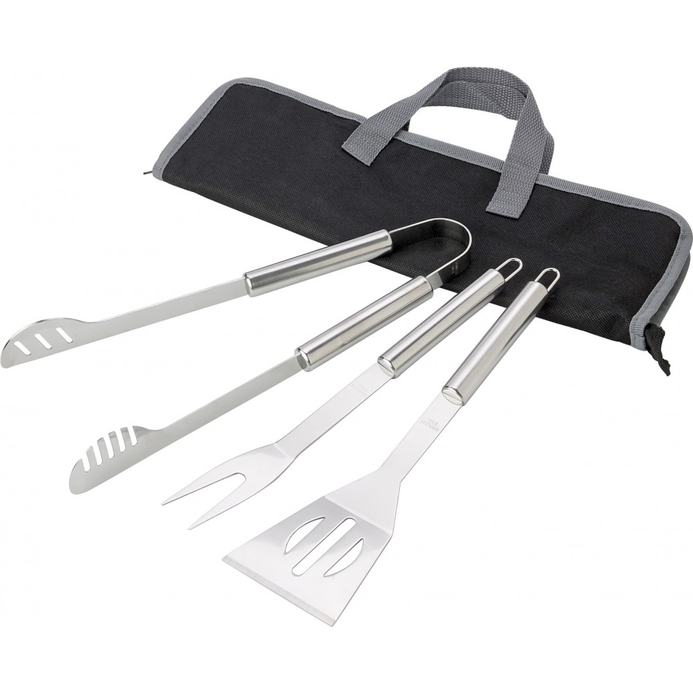 3 darabos BBQ készlet nemszőtt táskában. Húslapát, fogó és villa.