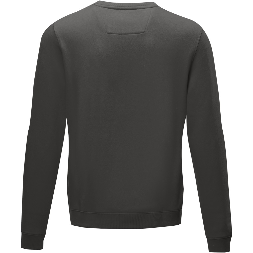 Kereknyakú pulóver fenntartható, tanúsított organikus pamutból és újrahasznosított poliészterből. V alakú betét a nyaknál. Belül bolyhos, puha anyag. Bordás nyak- alj-, és ujjpasszé. Kétszínű, márkázott szalagerősítés a nyakban. Félhold alakú betét a nyakban. 80% tanúsított organikus pamut és 20% tanúsított újrahasznosított poliészter, 280 g/m2.