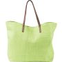 Strandtáska tündöklő színekben, barna fülekkel, belül mágnespatentos záródással. Anyaga: műbőr, papír, poliészter.
