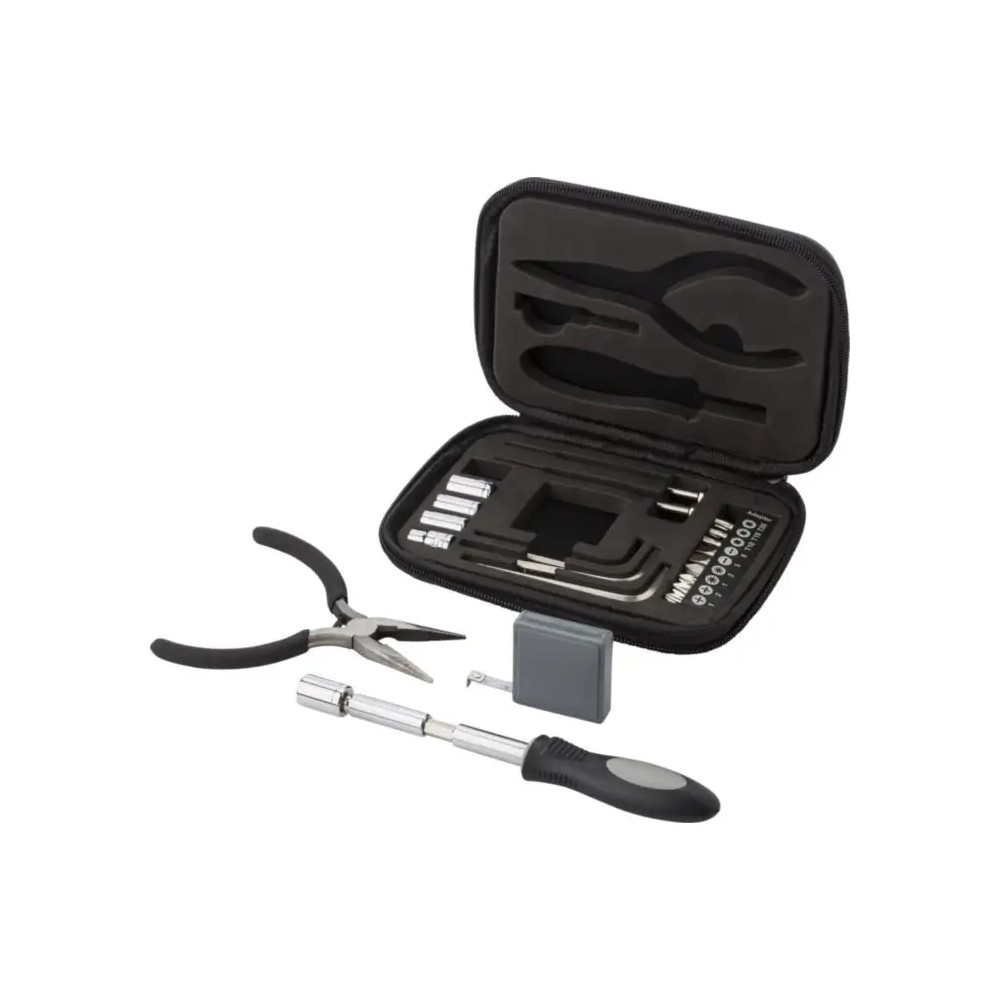 Szerszámkészlet préseltbőr tokban, fekete