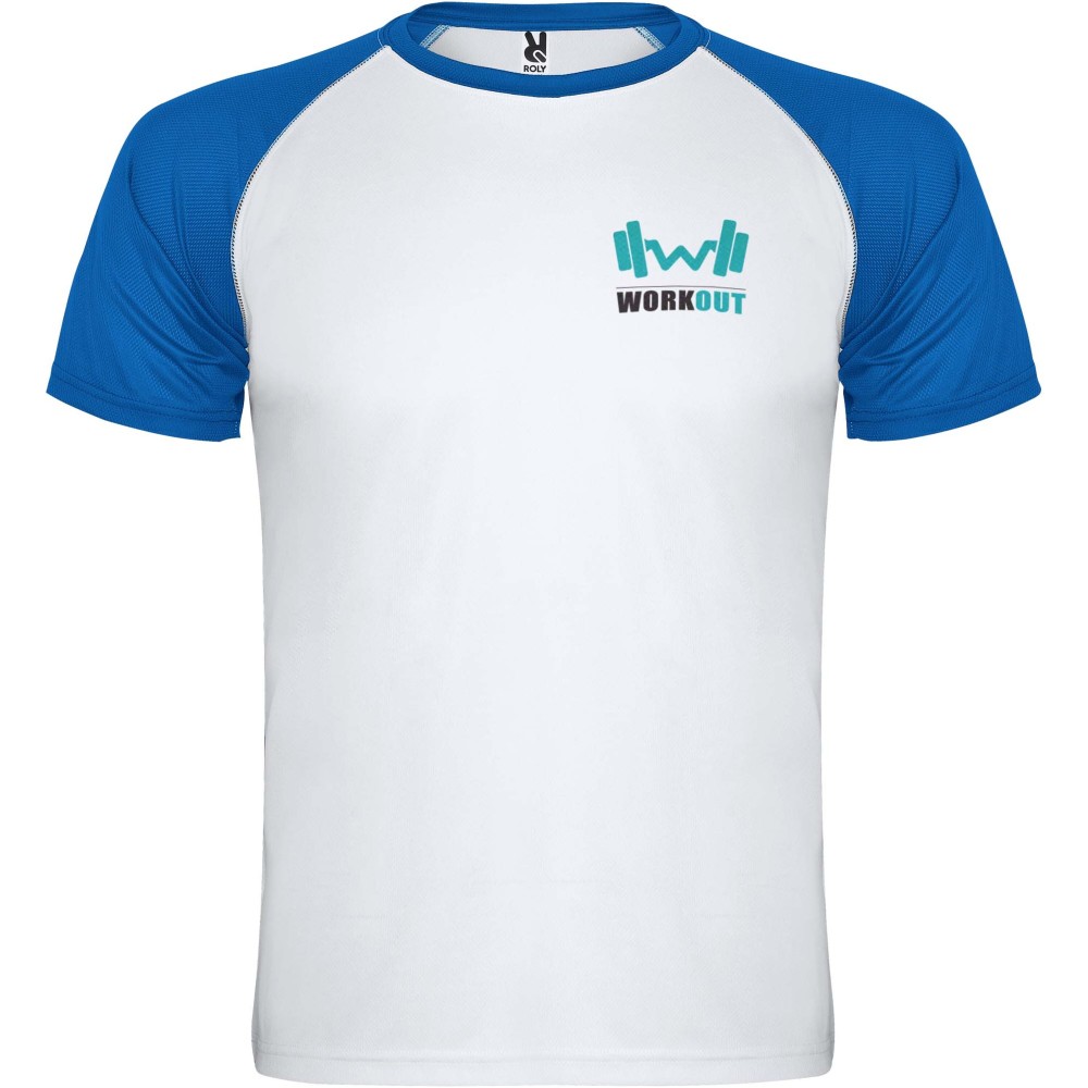 Roly Indianapolis rövid ujjú uniszex sportpóló, white, royal blue
