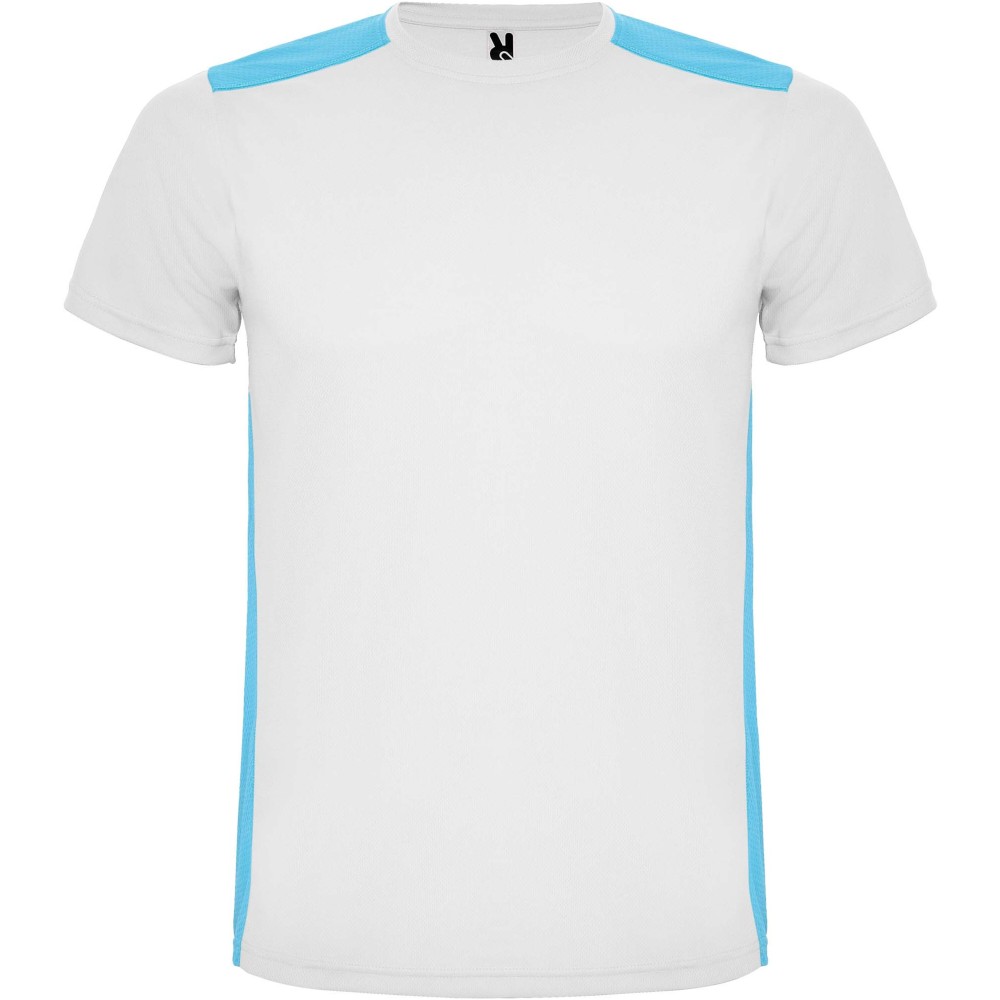 Roly Detroit rövid ujjú uniszex sportpóló, white, turquois