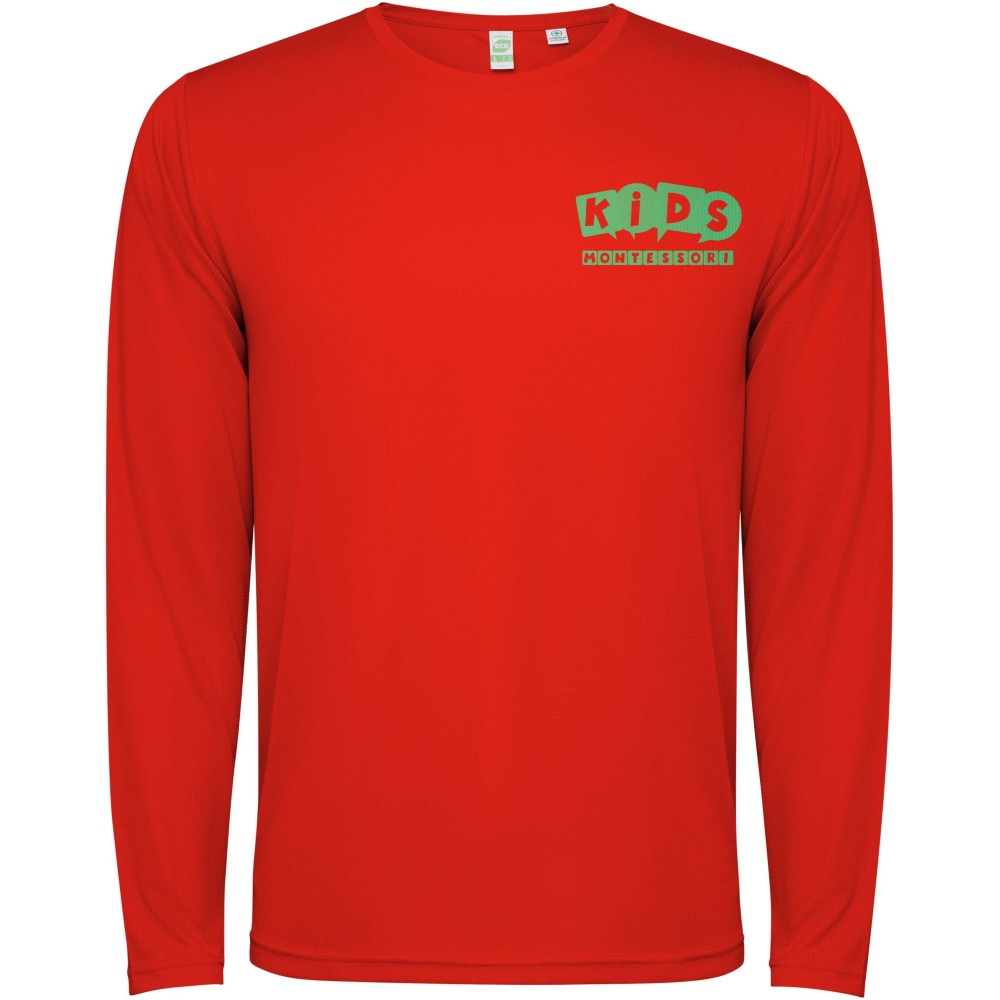 Gyerek hosszúujjú uniszex technikai póló. Gallér színazonos varrással. Hátul enyhén hosszított fazon.