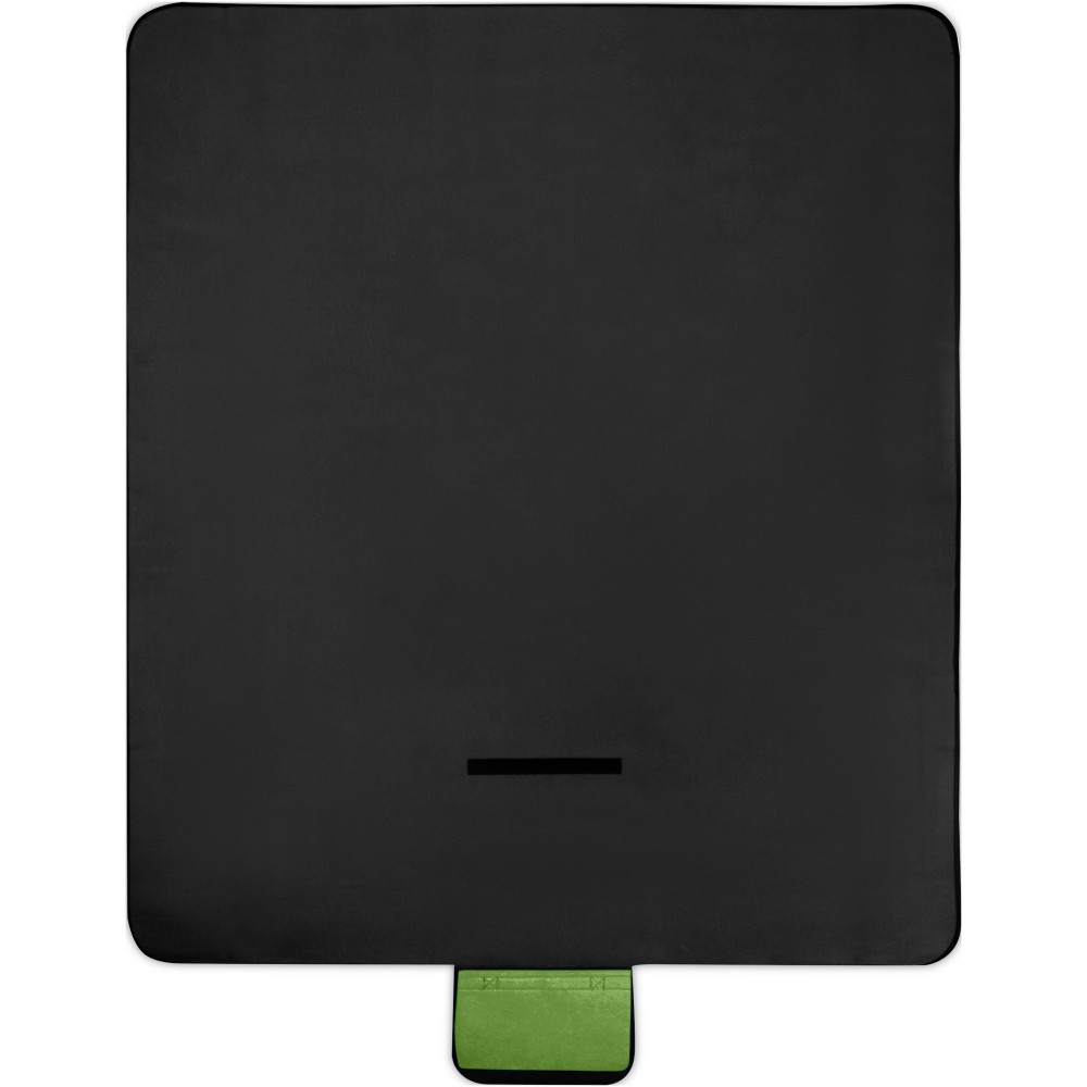 Vízálló, 140 g/m2-es pikniktakaró újrahasznosított PET műanyagból, fenntartható választás. Összecsukva és rögzítve a takaró könnyen tárolható és hordozható a mellékelt fogantyúval.