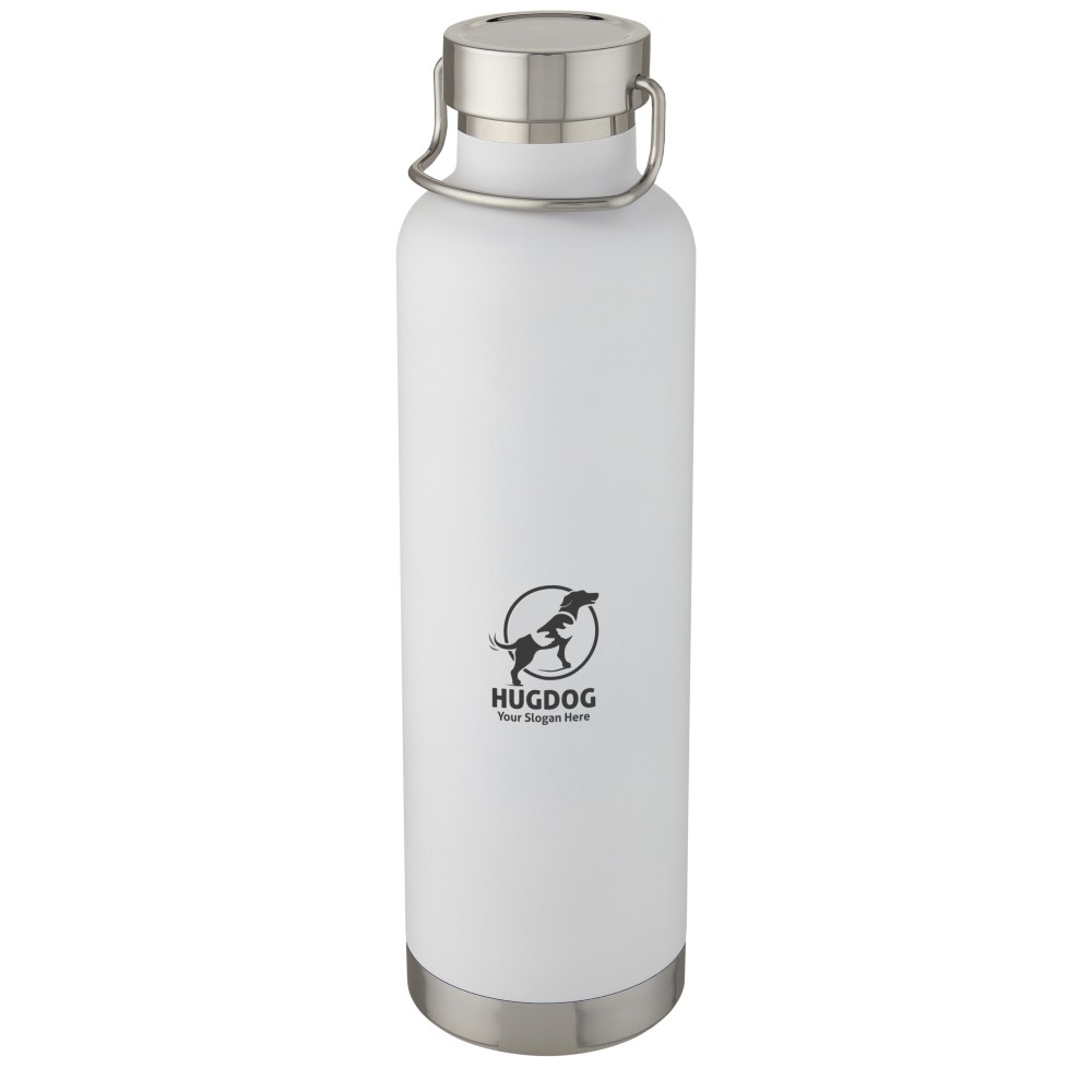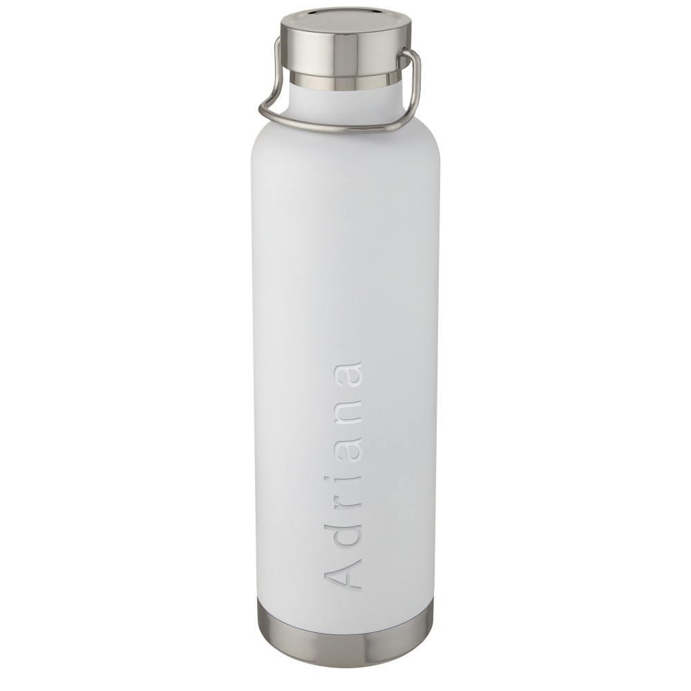 Nagy, duplafalú sportpalack 18/8-as rozsdamentes acél vákuumkonstrukcióval és rézszigeteléssel, amely több órán keresztül melegen vagy hidegen tartja az italokat. A konstrukció megakadályozza a páralecsapódást a palack külső oldalán, és a trendi porfújt bevonat extra tartóssá teszi. Rozsdamentes acél, csavaros fedél tartós, rozsdamentes acél fogóval. Széles nyílás a könnyű feltöltéshez, öntéshez és tisztításhoz. BPA-mentes, a német élelmiszerbiztonsági törvény (LFGB) szerint tesztelt és jóváhagyott. Ftaláttartalomra tesztelve és jóváhagyva a REACH előírásai szerint. Jégkockákhoz tökéletes. Szivárgásmentes. Szénsavas italokkal nem használható. Mosogatógépben nem mosható és mikrohullámú sütőben történő melegítésre nem alkalmas. Űrtartalom: 1 l. Újrahasznosított karton díszdobozban.