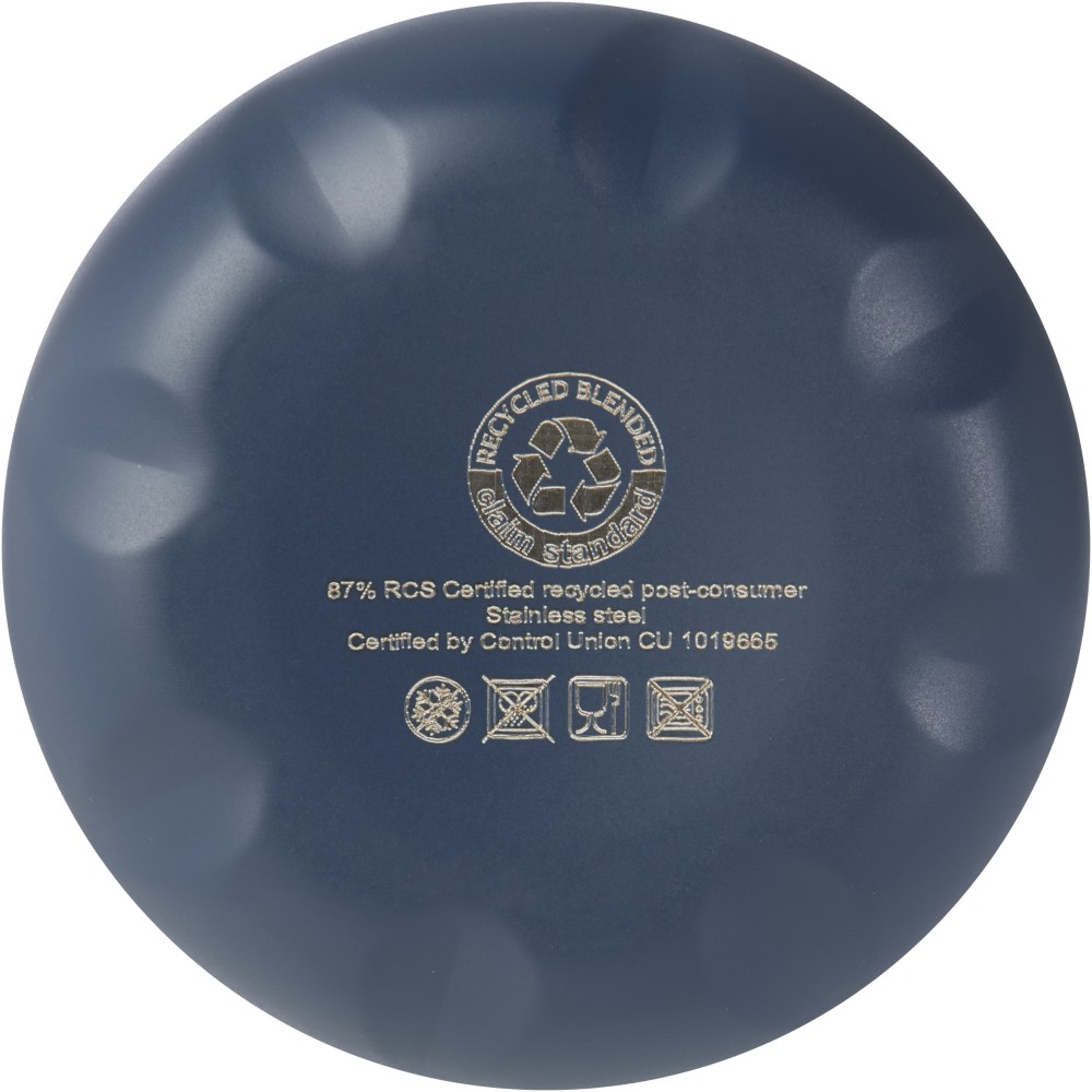 Vákuumszigetelt, RCS tanúsítvánnyal rendelkező, újrahasznosított rozsdamentes acél palack ikonikus dizájnnal, amely több órán keresztül tartja melegen vagy hidegen az italokat. A legtöbb pohártartóba illeszkedő talppal ellátott, elegáns megjelenésű vizes palack tökéletes promóciós termék. A német élelmiszer-biztonsági jogszabályok (LFGB) szerint, valamint a REACH-szabályozásnak megfelelően ftalát-tartalomra tesztelt és jóváhagyott. Űrtartalma: 500 ml. Újrahasznosított kartonból készült díszdobozban szállítjuk.