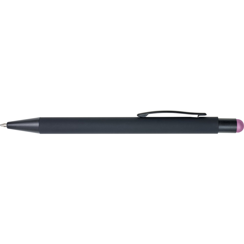 Golyóstoll színes érintővel, kék tollbetéttel és színes belső felülettel. ABS műanyag és alumínium.