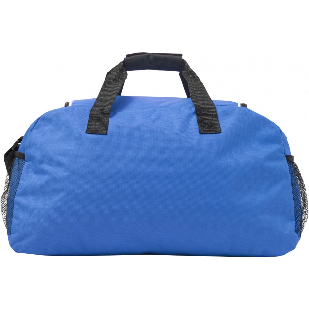 Sport- és utazótáska cipzáros elsőzsebbel és mindkét végén hálós zsebekkel. 600D poliészter.