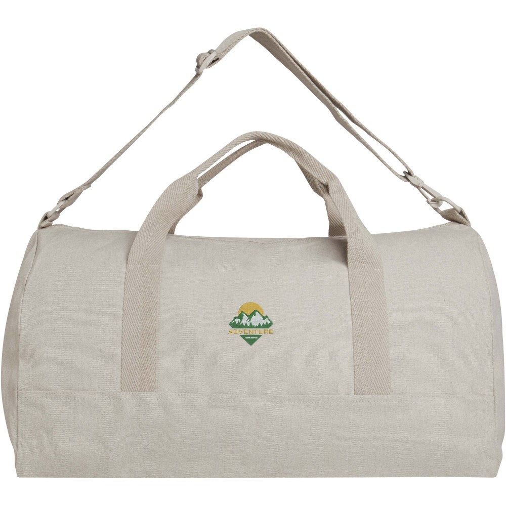 A Porter sporttáska 500 g/m2 újrahasznosított pamutból és poliészterből készült, tágas fő rekesszel a nagyobb tárgyak optimális tárolására, valamint egy kisebb elülső zsebbel, amely ideális például útlevél vagy mobiltelefon elhelyezésére. A táska kézben vihető a két rövid fogantyú segítségével, vagy a levehető és állítható vállpánttal, amely maximális kényelmet biztosít viselés közben. A sporttáska Cyclo újrahasznosított szálakat tartalmaz, amelyek előválogatott hulladékból készülnek - ennek megfelelően alakul a fonal természetes színe is. Ezek a szálak nemcsak a primer nyersanyagok iránti igényt csökkentik, hanem hozzájárulnak a körforgásos gazdaság megvalósításához, elősegítve a hulladék csökkentését és a zárt rendszerű gyártást. Minden táska Aware nyomkövetővel van ellátva, amely QR-kód segítségével lehetővé teszi a termék eredetének és útjának nyomon követését. Ez az innovatív megoldás növeli az ellátási lánc átláthatóságát, és erősebb kapcsolatot teremt a vásárló és a gyártási fol